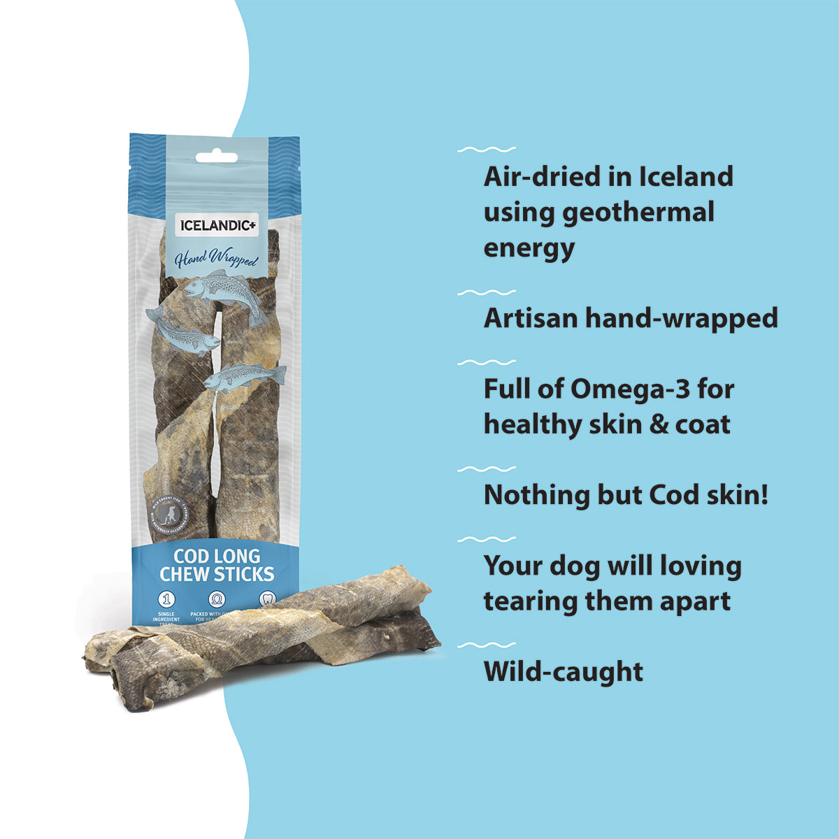 Icelandic+ Hand Wrapped Cod Skin Long Chew Sticks – Single-Ingredient Chews